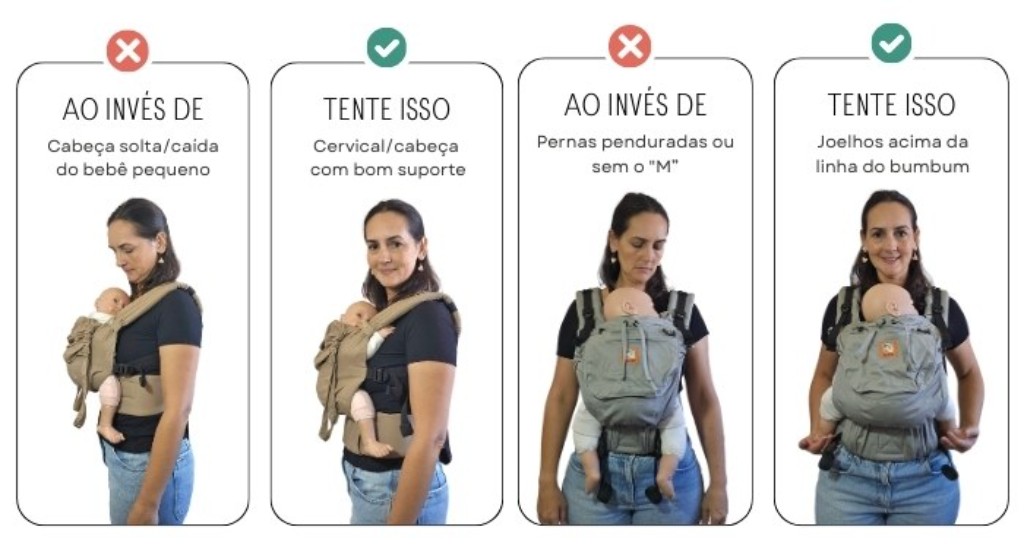 Lembre-se de que o jeito de carregar muda conforme o bebê cresce e se torna cada vez mais ativo no colo.Essa é uma das belezas do babywearing! 💛
